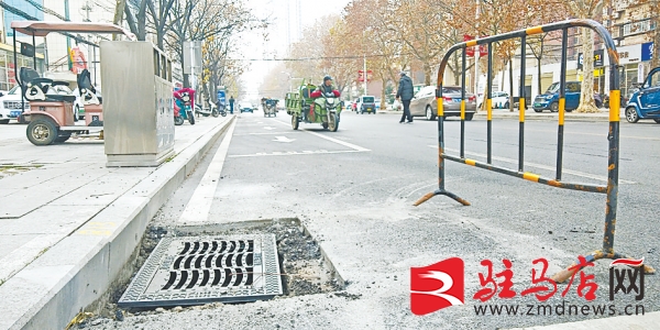 驻马店网讯(记者 王永良)12月7日下午,几名市政施工人员正在市区文化路中段将路边的雨水井箅子起出,换上新型的雨水井盖,并放置了警示栏(如图)。