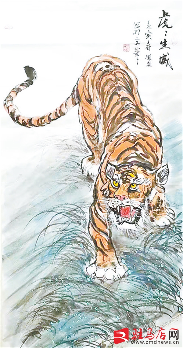 虎年到,驻马店市书画家以虎为题,挥毫泼墨,画虎迎春。以虎为题材的绘画由来已久,唐代画家吴道子、元代周耕云、明代赵廉、清代高其佩都是画虎名家。到了近现代,画虎艺术成就更是超过前人,张善仔、刘继卣笔下之虎活灵活现,神态逼真。