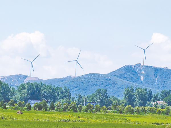 风电具备经济性高、占地少、环境友好的优势,发展风电既可将资源优势转化为乡村集体收入,又能加强农村电网建设、调整能源结构,通过绿色电力消费实现绿色乡村振兴发展。近年来,确山县本着“绿水青山就是金山银山”的发展理念,盘活乡村土地资源、产业资源,大力发展风力发电等绿色经济产业,实现生态保护和可持续发展。一台台“大风车”将风能转化为“绿电”,不仅引领了清洁能源的“绿色梦”,还赋予了乡村振兴新动能。