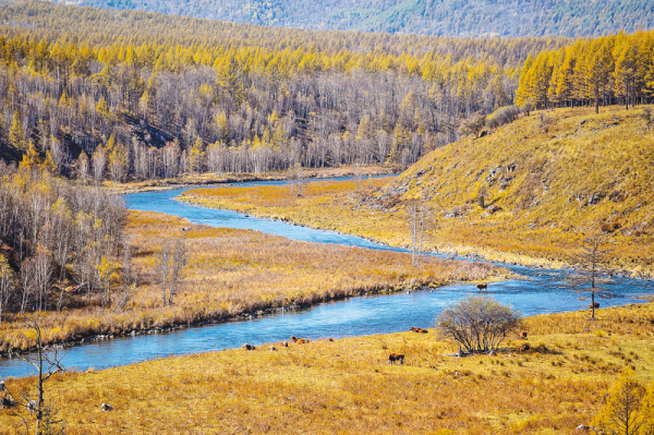 这是9月21日拍摄的阿尔山国家森林公园中不冻河的自然风光。