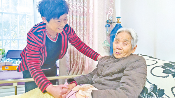 进入夏季,担心老人生褥疮,张新芝天天为老人翻身、按摩、洗脚、擦洗身子。虽然她因劳累生病住院,但她从不喊苦喊累。
