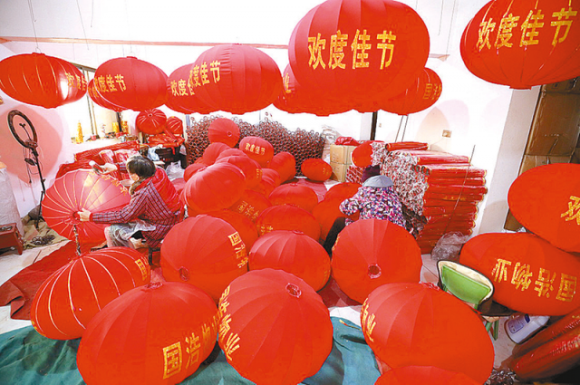 12月27日,在焦作市温县北冷乡许北张村一家灯笼作坊,村民在赶制大红灯笼。