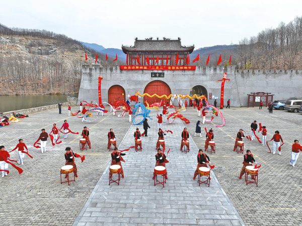 彩龙飞舞庆春回,各色彩龙或盘旋或翻滚,尽情飞跃、升腾、游动……一招一式,舞出神龙雄姿风范,舞出龙马精神,景区内鼓乐声威、锣鼓震天,汇成一片欢乐的海洋。游客们赏美景、看表演、游园踏青、登高祈福,共庆青龙节。