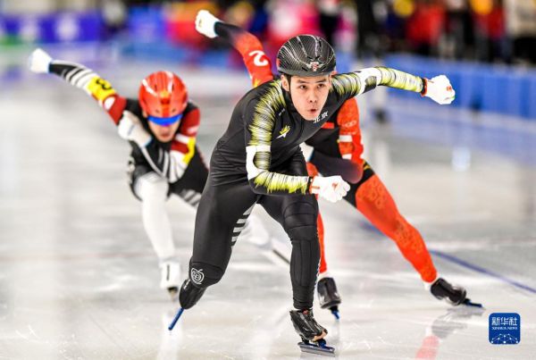 当日,2022-2023赛季全国速度滑冰冠军赛男子短距离团体追逐赛在乌鲁木齐举行。