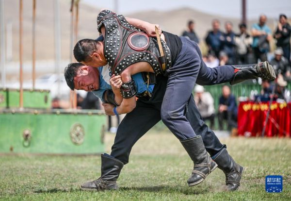 5月16日,选手们在搏克比赛中。新华社记者 彭 源 摄