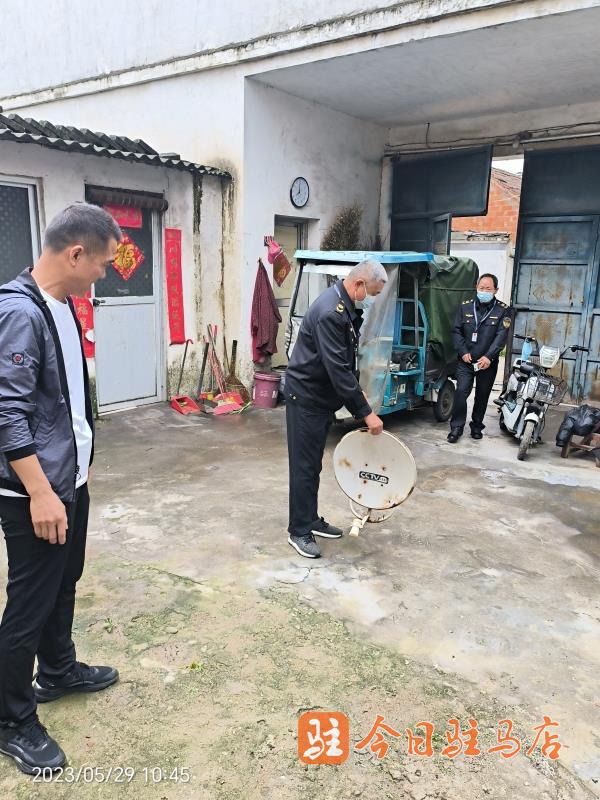 驻马店网讯(记者 王晓晶 通讯员 吴子涵 文/图)市长热线有群众举报“驻马店市经济开发区关王庙乡杨桥村委丁庄一村民家私自安装卫星电视”。接举报后,驻马店市文化广电和旅游局执法人员协同关王庙乡杨桥村村委工作人员于5月29日10时38分赶到关王庙乡杨桥村丁庄居民薛某家,执法人员向丁庄村民薛某出示执法证件后对其说明来意,并发现薛某家二楼窗口有一面卫星电视接收小锅。薛某积极配合,带领执法人员到二楼检查,检查中发现该卫星锅已停用,卫星锅连接电视的同轴电缆已经断开,并向执法人员说明该卫星电视已经停用很久,家中观看电视用的是中国移动网络电视,只是卫星锅固定在二楼窗口位置没有拆除。
