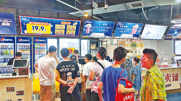 当日上午9时许,记者在影城看到,前来观影的市民络绎不绝,前台早已排起了小长队,候场区更是座无虚席。记者发现学生是观影主力军,多是大人带着孩子来观影,这也符合暑期档的特征。