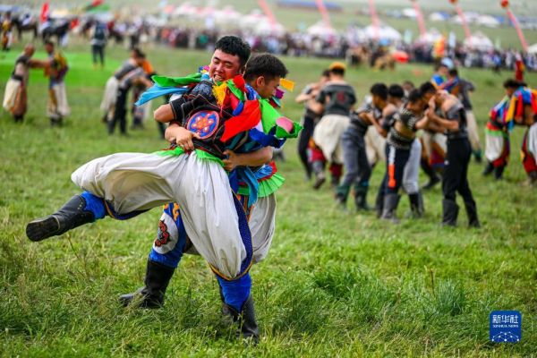 7月23日,搏克手在开幕式上表演。新华社记者 彭 源 摄