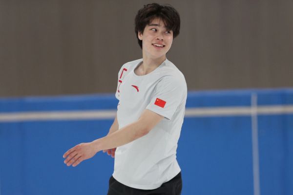 6月15日,男子单人滑运动员戴大卫在训练中。新华社记者 许雅楠 摄