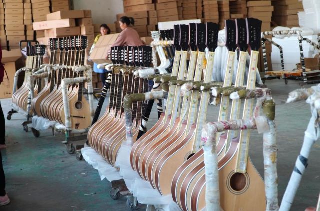山东省昌乐县鄌郚镇是一个因乐器生产而闻名的特色产业小镇,该镇可生产电吉他、电贝司、尤克里里、班卓、曼陀铃等8大系列近400个花色品种的乐器产品。