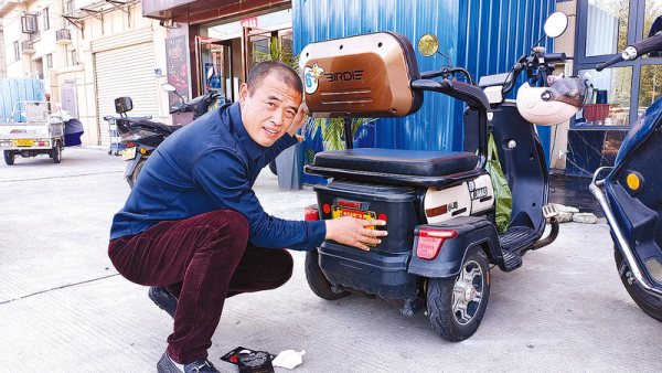 看到电动车后面没反光贴,姜运红总是上前免费贴