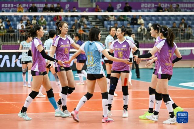 当日,在2023-2024中国女子排球超级联赛第一阶段小组赛A组比赛中,天津渤海银行队主场以3比0战胜河南双汇队。
