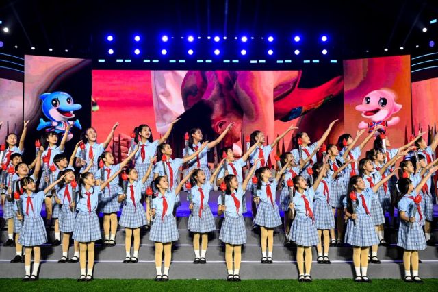 火炬缓缓熄灭,盛会记忆长存。歌曲《骄傲》的旋律在现场响起,大屏幕上闪过本届学青会的一个个精彩瞬间。