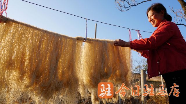驻马店网讯(记者 张 建)11月19日,驿城区板桥镇黑石山村的村民趁着天气晴好,家家户户都开始晾晒粉条。晾晒场上,一杆杆、一排排晶莹剔透的粉条如丝绸般随风飘动,在冬日暖阳的照射下,格外晃眼;农民们穿梭其间,在不停地抖摆、捋顺着粉条。