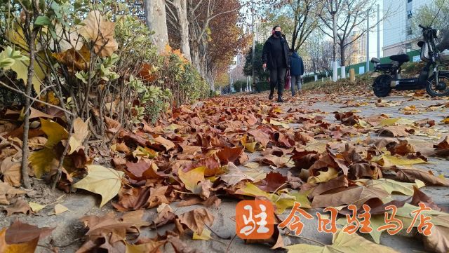 据驿城区城管局环卫所工作人员周先生介绍,今年秋冬气温下降缓慢,落叶时间延长,加上昨晚一场大风,落叶铺满道路。为保持市容环境整洁,环卫所启动了秋冬季应急预案,统一部署,积极应对落叶现象,增加保洁频率。环卫工人通过即扫即清的方式,把落叶清扫到一起,用三轮车、编织袋等及时运走。