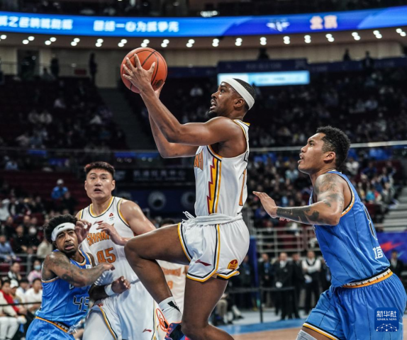 12月7日,山西汾酒队球员泰勒(中)在比赛中上篮。新华社记者 彭子洋 摄