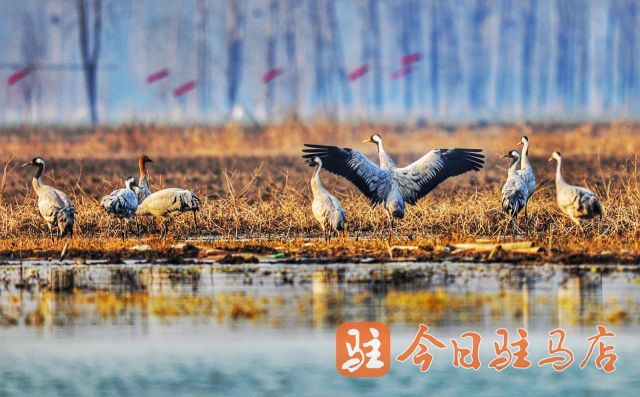 驻马店网讯(记者 李贺建)宿鸭湖,这个位于驻马店市的美丽湖泊,12月19日迎来了首批30余只灰鹤。这些优雅的生灵在湖畔的湿地上空翱翔,为这片宁静的水域增添了新的生机与活力,而在这个美丽的瞬间,摄影师张斌用他的镜头记录下了这一生态之美。