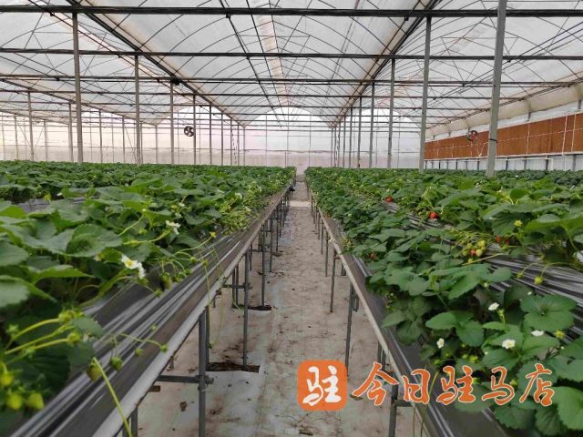 驻马店网讯(记者 张遥驼)12月19日,记者刚迈入驿城区天中生态农业草莓采摘园内,一股浓郁的草莓果香扑面而来,只见一垄垄碧绿的草莓植株在半空中整齐排列,形成了一道道“绿植空中长廊”,饱满红润的草莓从藤蔓中悄悄“探”出头来,惹人垂涎。