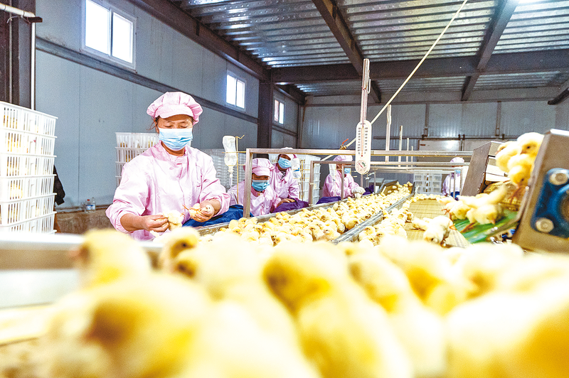 12月26日,位于西平县的河南森亚农牧发展有限公司,9层恒温式种鸡舍中,饲料机自动穿梭;鸡蛋分拣线旁,工人正在认真分拣种蛋。