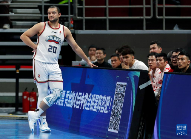 1月8日,南京头排苏酒队球员兼主教练西热力江在场边观赛。新华社记者 雒圆 摄