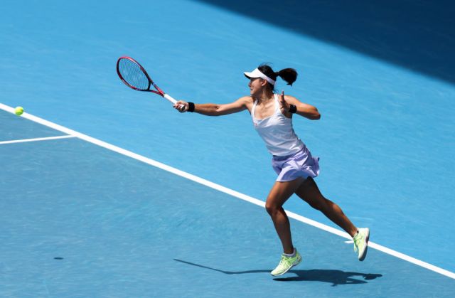 1月20日,郑钦文在比赛中回球。新华社记者 马平 摄