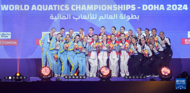 当日,在卡塔尔多哈举行的2024年世界游泳锦标赛花样游泳集体技巧自选决赛中,中国队以244.1767分的成绩获得冠军。