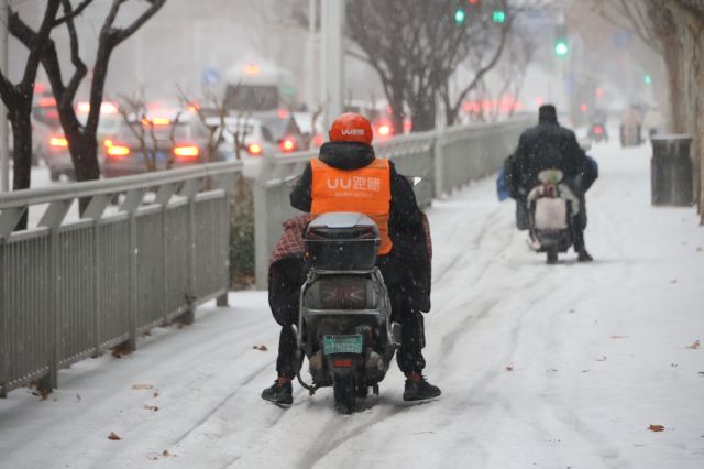 2月20日,郑州迎来了龙年新春的第一场雪。风雪之中,一抹流动的橙色温暖人心。