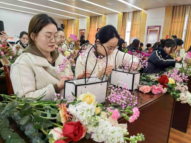 驻马店网讯(记者 刘金霞 通讯员 李丹)为迎接“三八”妇女节的到来,丰富女职工精神文化生活,3月7日下午,驿城区雪松街道机关工会在办事处二楼大会议室举行“魅力女性、美丽如花”三八节插花培训活动。办事处全体女职工近百人参加了此次培训,大家欢聚一堂,共同庆祝自己专属的节日。