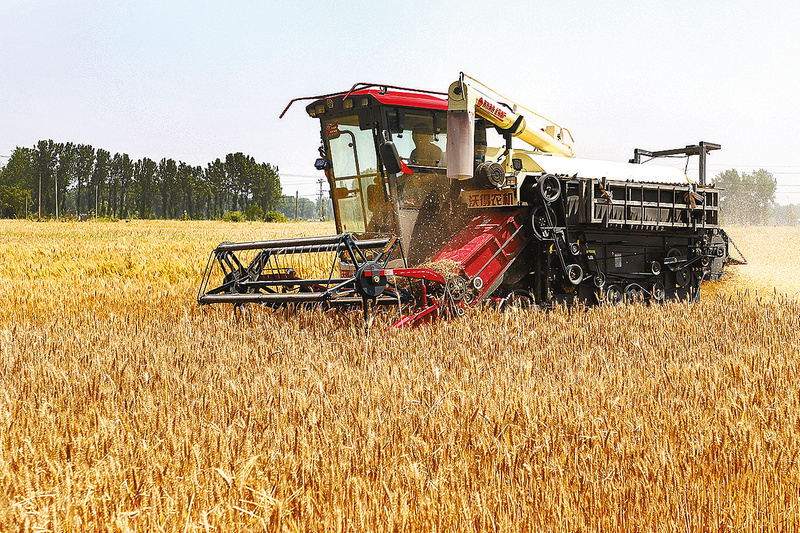 5月17日,在正阳县大林镇十门村,村民正在收割小麦。