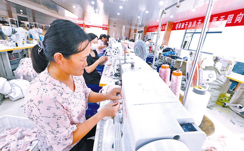 9月10日,在汝南县张楼镇宇航鞋业有限公司生产车间内,40多名“能工巧妇”正在忙碌着,裁剪、缝纫、镶嵌一套动作行云流水。