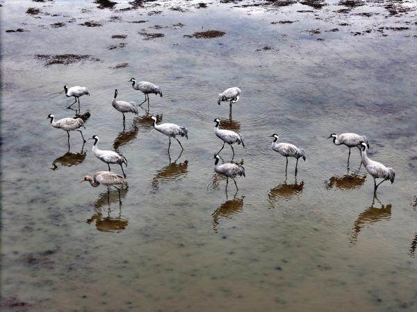 据我市知名军旅摄影师张斌介绍,他们首先发现的是一批来宿鸭湖越冬的灰鹤,在灰鹤群中发现这只特别的“贵客”。“鸟儿是环境最好的评判者。黑颈鹤选择宿鸭湖,是对这里的自然生态最好的肯定。”张斌说。