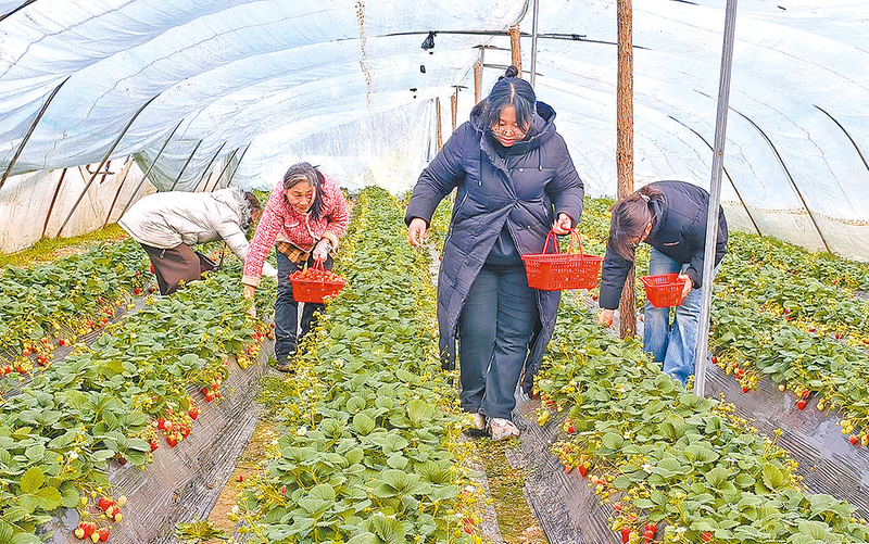 2月5日,在市区西郊一家草莓采摘园的暖棚里,一垄垄草莓生长态势良好,犹如一盏盏小灯笼,色泽绯红鲜亮,果香扑鼻而来。游客手提篮子,精心挑选着草莓,欢声笑语回荡在棚内。