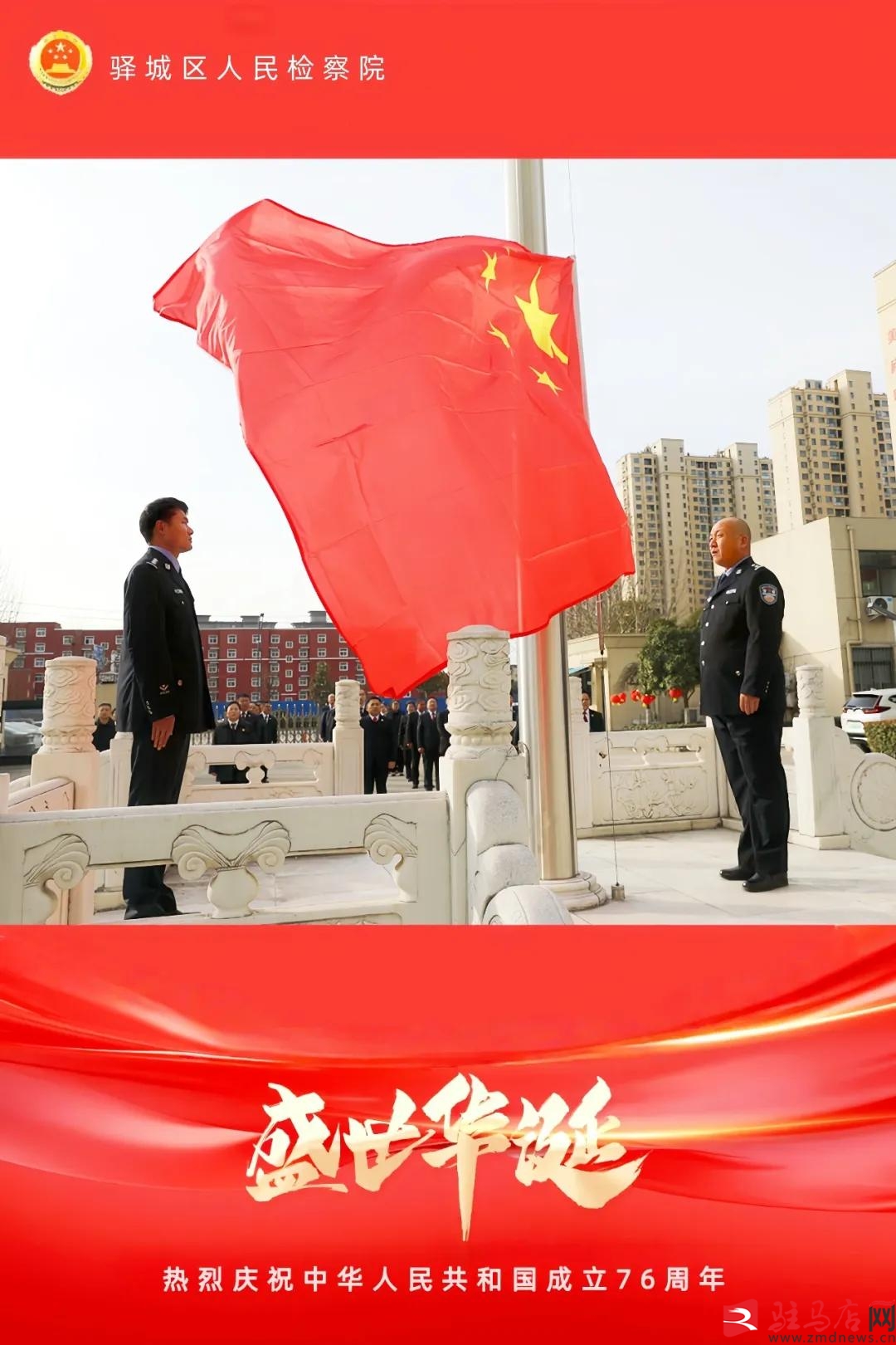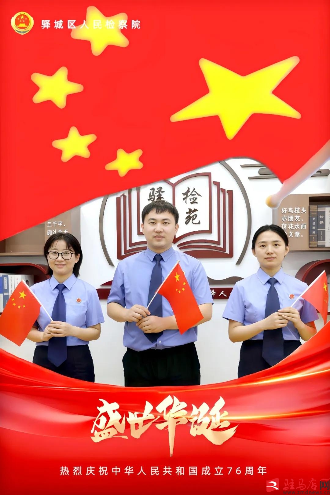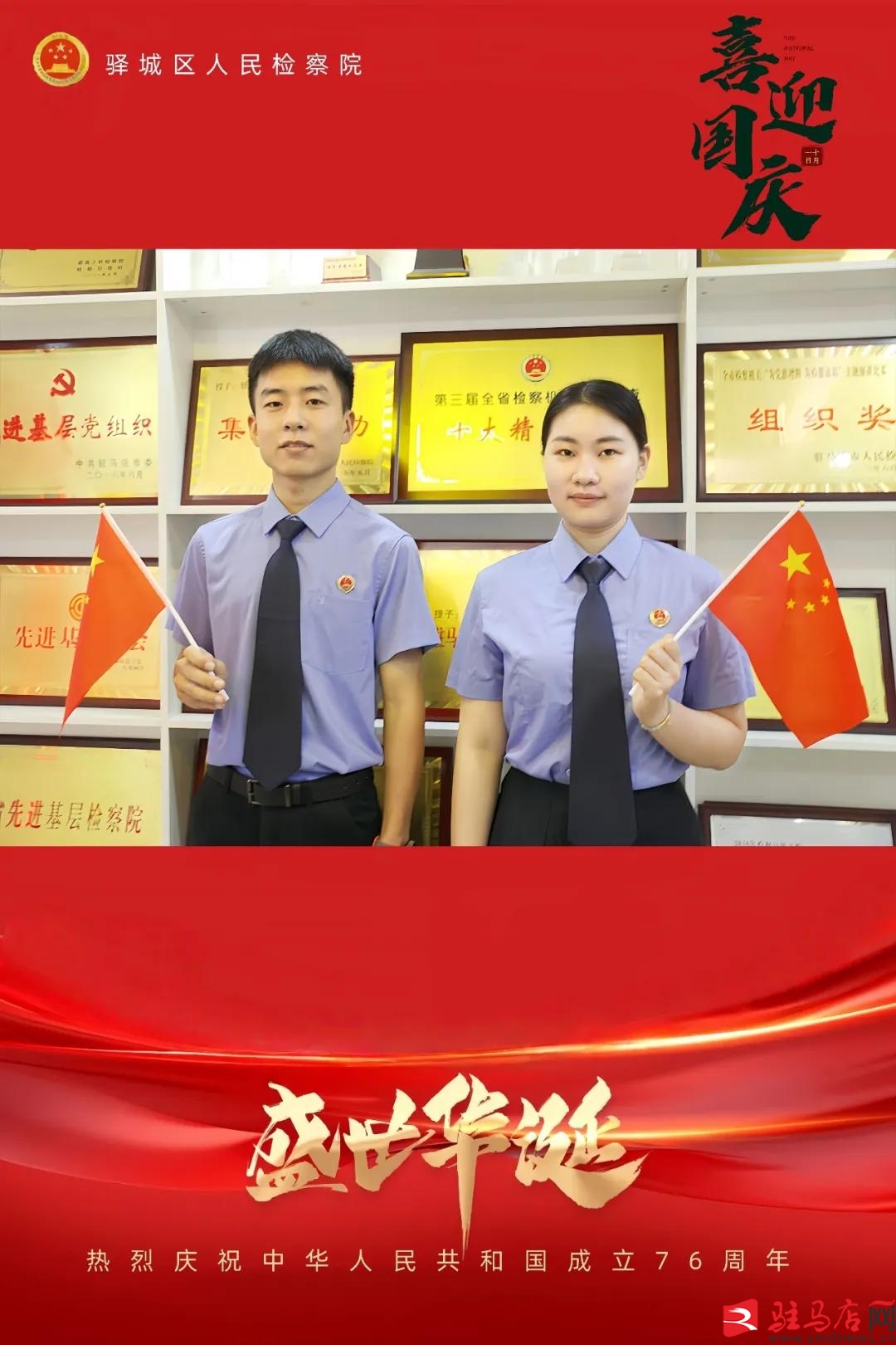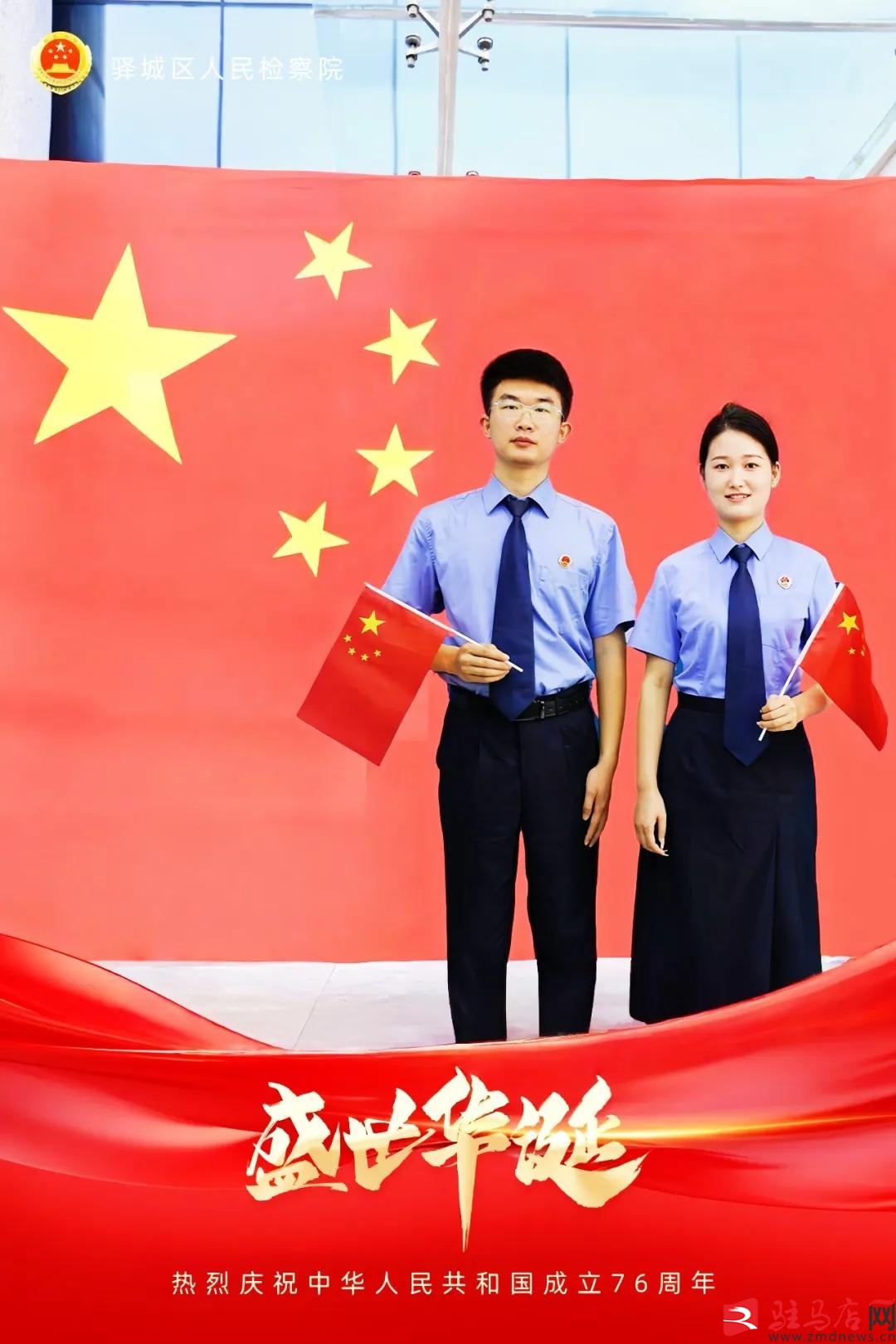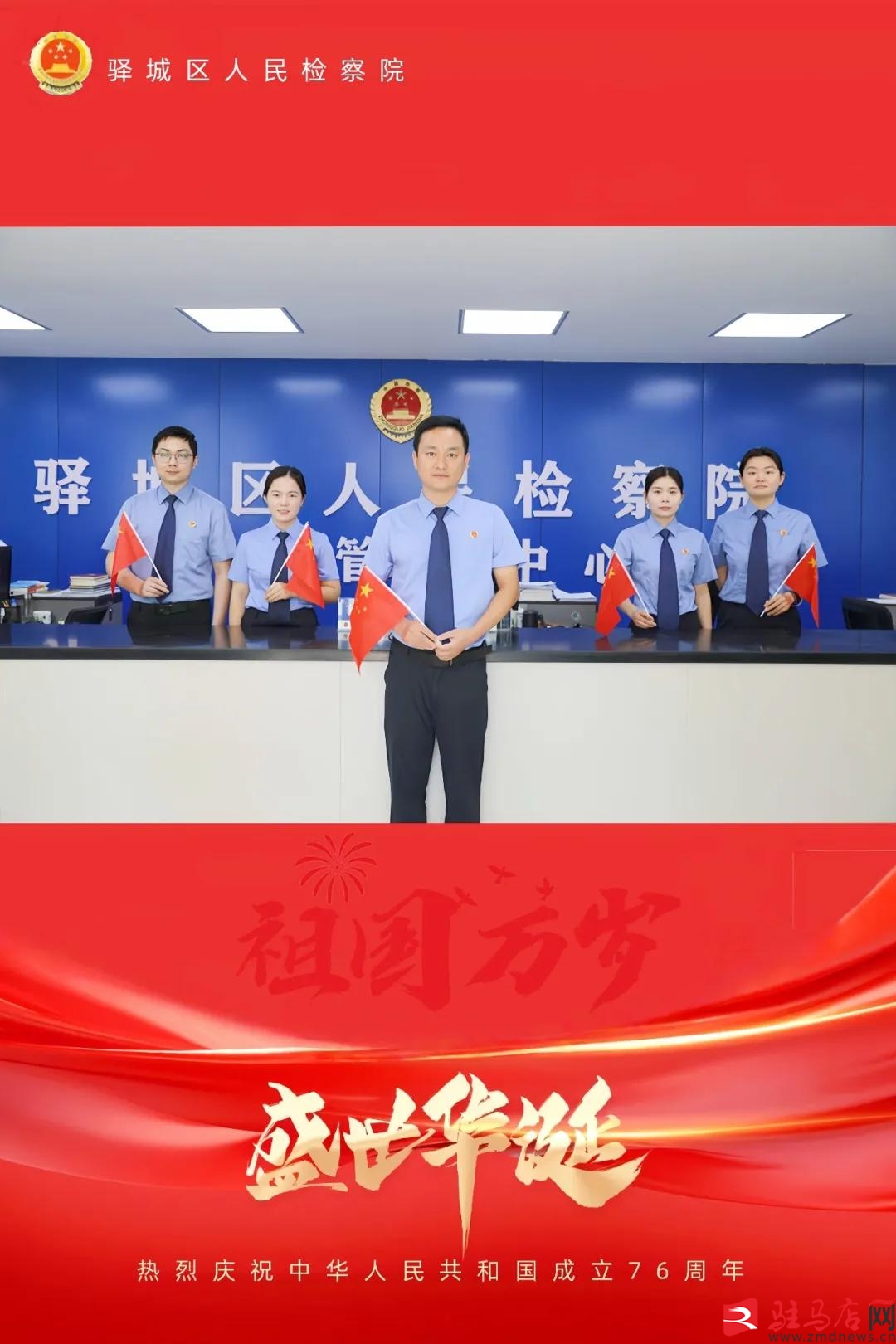 在中华人民共和国成立76周年之际,驿城区人民检察院以“检察蓝”献礼“中国红”,向祖国深情表白,祝愿祖国繁荣昌盛,河山锦绣。