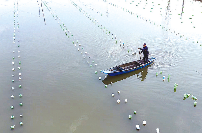 近日,正阳县寒冻镇徐庄村珍珠蚌养殖基地水波粼粼。该村从浙江引进养殖加工企业,利用老砖瓦厂、闲置水库等,建设2个养殖基地共400亩水域,发展珍珠蚌养殖助民增收致富。