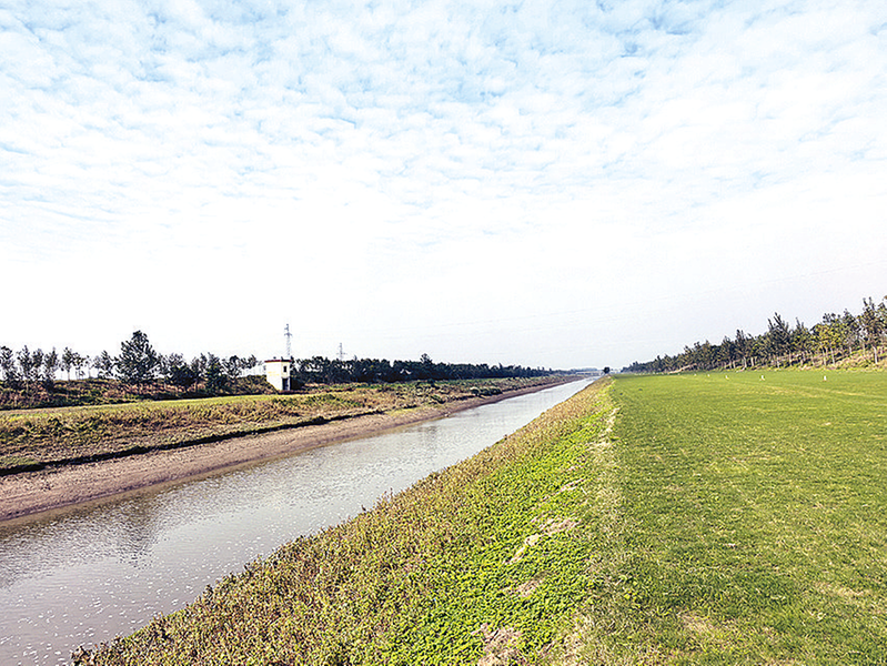 北汝河沿岸种植的经济草皮。