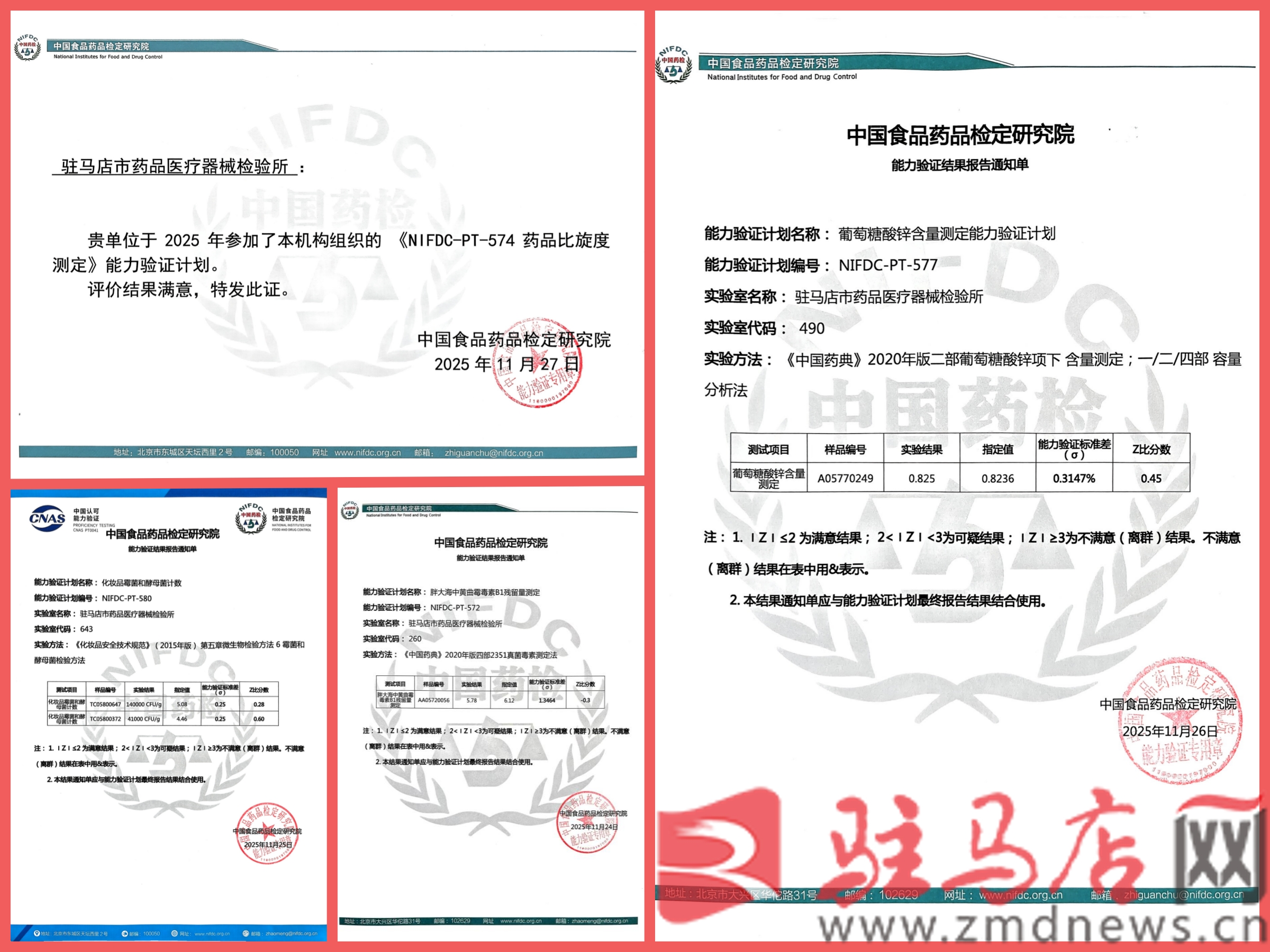 驻马店网讯(记者 杨 丽 通讯员 王晋才)近日,市药品医疗器械检验所传来捷报:在2025年度参与的4项国家级能力验证及1项省级实验室比对中,该所所有项目均获评“满意”等级,检验技术能力持续保持优异水平,实现了能力建设的新跃升。值得关注的是,这已是该所自2023年以来,连续三年在参与的国家级能力验证中斩获“满意”评价,标志着我市已构建起稳定可靠的高质量检验体系。