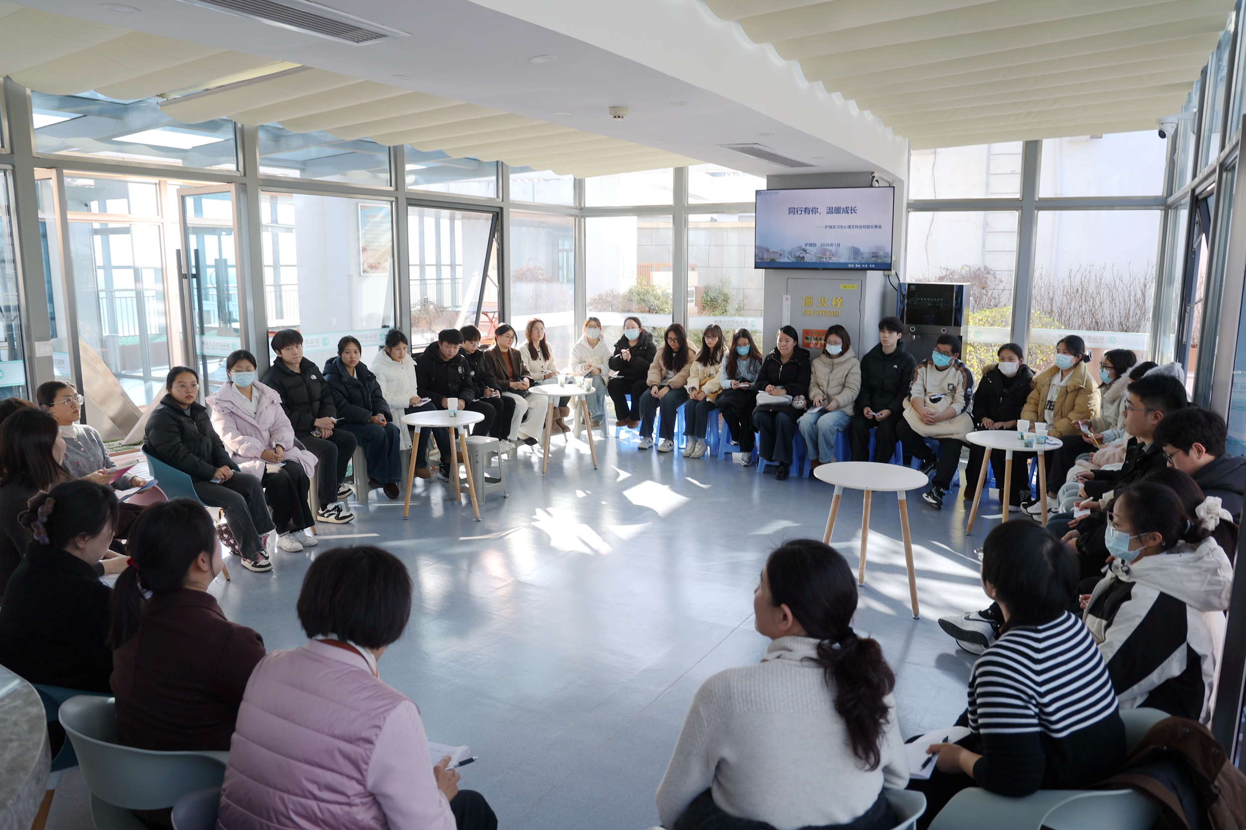 1月15日下午,市中心医院联合市护理学会人文护理专业委员会,在医院职工之家举办了护理实习生心理支持及经验分享交流会,来自各院校的30余名护理实习生代表齐聚一堂,共赴这场温暖的成长之约。