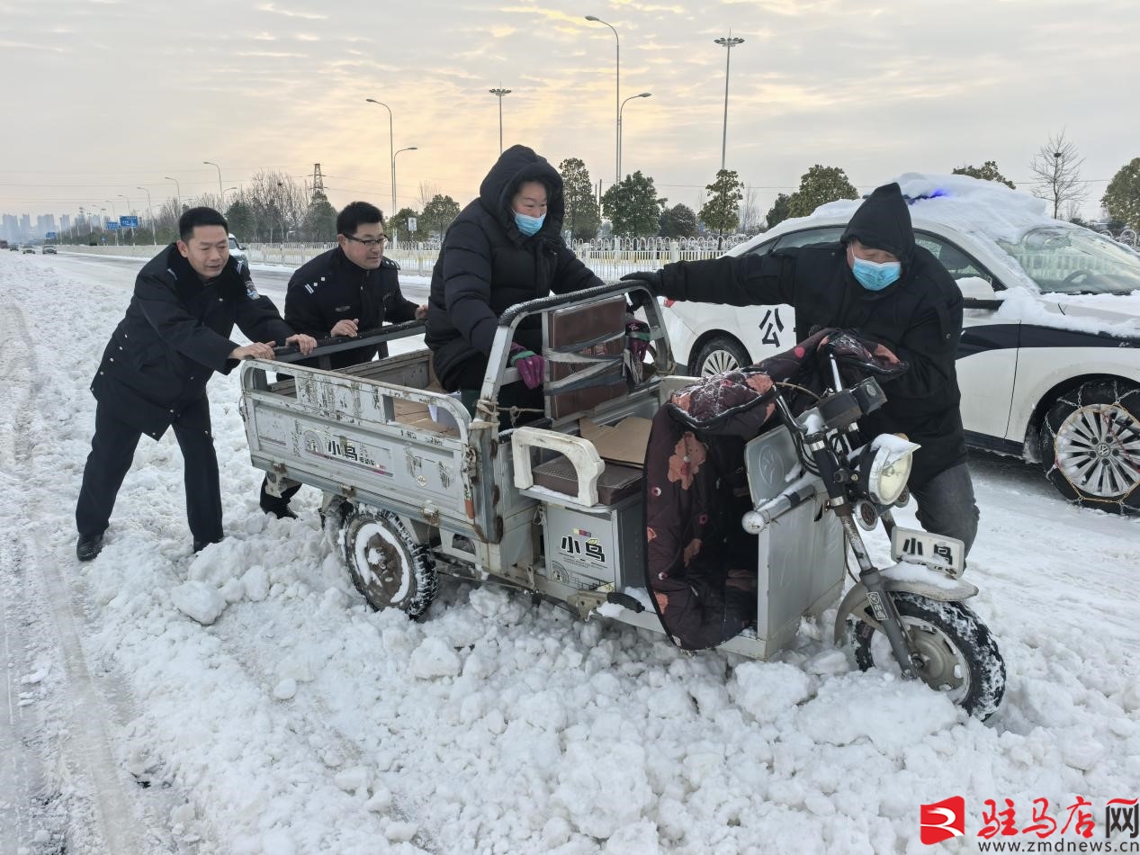 驻马店网讯(通讯员 杨起帆)1月21日上午10时许,受强冷空气影响,辖区普降大雪,路面湿滑结冰,给群众出行带来极大不便。市城乡一体化示范区公安分局民警在巡逻途中,行至雪松大道时,发现一对夫妻驾驶的电动三轮车因路面结冰发生打滑,车辆侧滑至路边积雪中无法动弹,夫妻俩多次尝试推车均未成功,面露焦急之色。