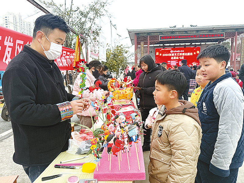 2月3日,开发区关王庙乡大舞台前人声鼎沸、锣鼓喧天,“强基工程”2026新春特别活动——“百花迎新乐中原”2026河南文艺界惠民演出活动在这里举行。演出结束后,义写春联活动拉开序幕,剪纸、泥塑等民俗展台前聚集了不少群众。此次活动由河南省文联指导,河南省舞蹈家协会、市委宣传部、市文学艺术界联合会主办,市舞蹈家协会、市民间文艺家协会、市书法家协会、市戏剧家协会、市杂技家协会、关王庙乡承办。