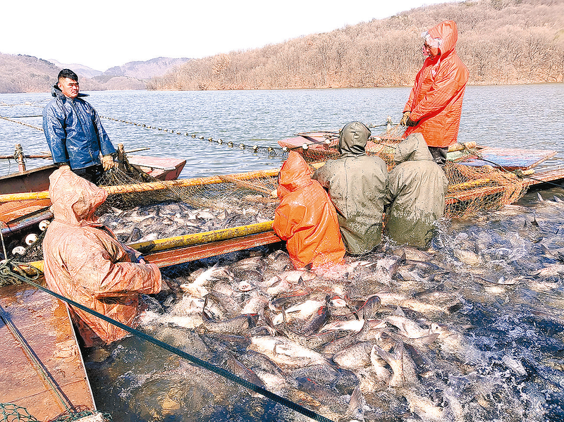 春节临近,又到了薄山湖松针鱼捕捞季。近日,记者在薄山湖看到,工人正在捕捞薄山湖松针野生花鲢鱼。随着渔网收拢,肥美的鱼儿竞相跃出水面,呈现一派鱼跃人欢的丰收景象。