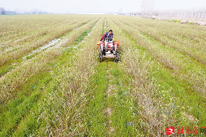 3月15日,在正阳县清源街道唐段庄社区,村民在大马士革玫瑰种植基地施肥除草。