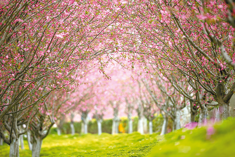 近日,西平县百万株海棠次第开花。在小洪河两岸,花海长廊如云似霞,粉白相间的花瓣随风轻舞,吸引游客纷纷走上河堤、涌入花海,赴一场春日的浪漫之约。