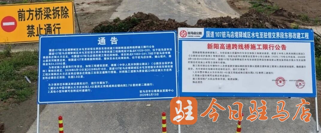 为保障国道107驻马店境驿城区水屯至驻信交界段东移改建工程顺利推进,确保施工质量与行车安全,近日,驻马店市公路事业发展中心发布限行公告,自2026年3月13日至8月18日,对项目关键路段实施封闭施工与限行管理。