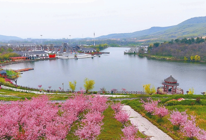 4月1日,春风送暖,老乐山迎来至美四月天。老乐山景区内,春水粼粼、桃花灼灼、流苏似雪,美景如画。