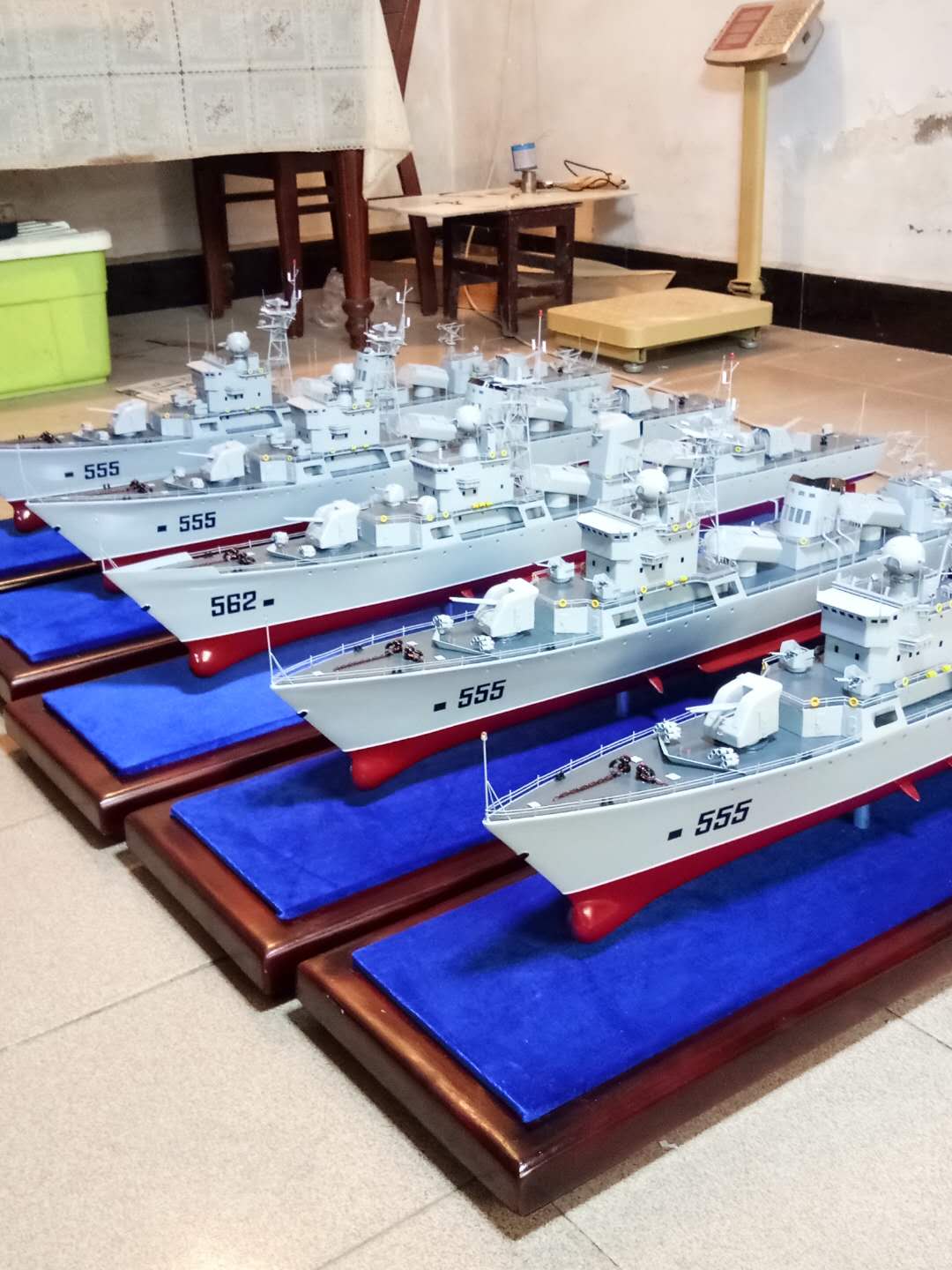 接到任务后,张国军二话不说,立即找来大量铜皮,对照南充舰(502舰)的舰身比例,一点点拼接完成。经过两个月的加班加点、日夜奋战,3艘1.3米的南充舰(502舰)舰艇模型全部制成。