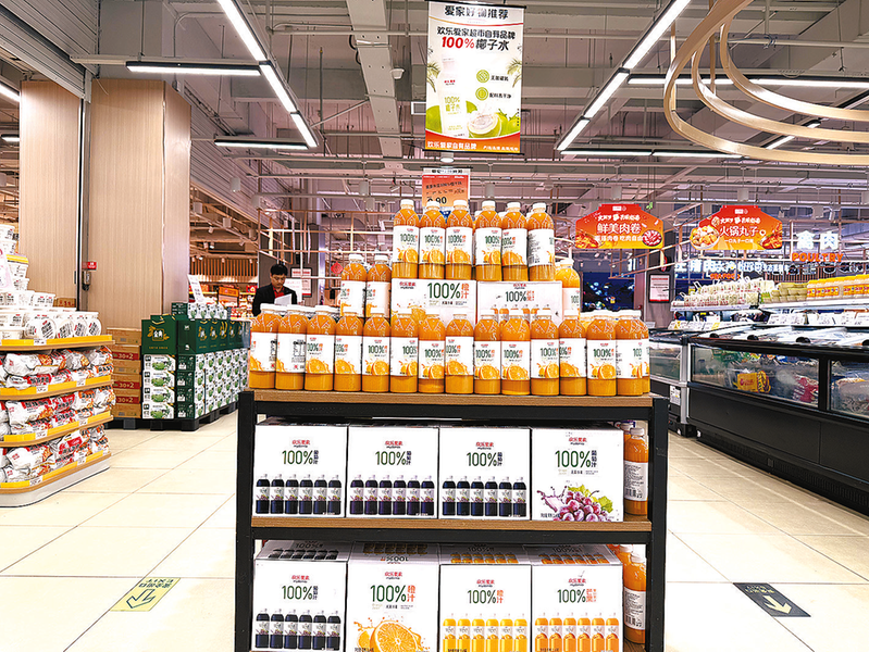 欢乐爱家超市纯果汁专区打造品质消费场景。
