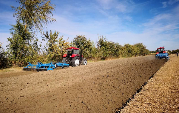 农业机械在洛阳—布哈拉农业综合示范区内作业。图片由受访者提供