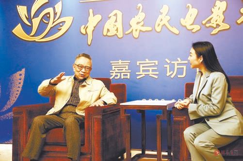 国家一级演员鲍国安接受采访。 记者 吴波 摄