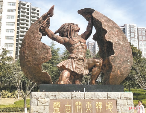 盘古文化是中华民族的优秀文化,为做好盘古文化的挖掘和传承工作,2007年,市政府投资兴建了盘古园。盘古园位于市乐山大道与泰山路交叉口西北角,以“盘古神话”文化为内涵,游园中心矗立着盘古全身雕像。盘古向上伸展双臂,左手托日,右手托月。游园通过“沉睡万年”“开天辟地”“混沌初开”“化作万物”四个主题规划来讲述盘古开天辟地这个美丽的神话。园内植物品种丰富,道路铺有青石和鹅卵石,来到游园,市民一边休闲娱乐一边可以了解历史文化。
