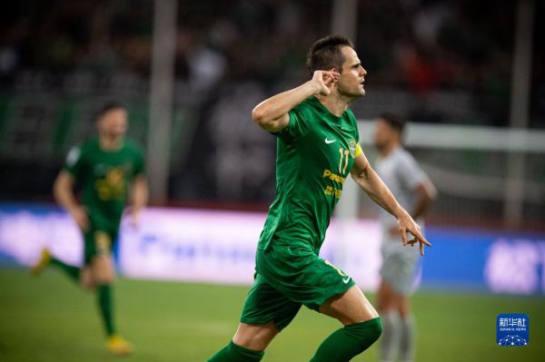 8月22日,浙江队球员弗兰克在进球后庆祝。新华社记者 江 汉 摄